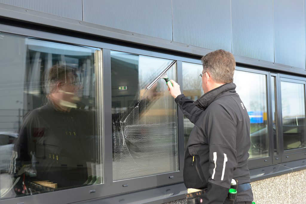 Wij leren de deelnemers geen kunstjes die ze op het examen mogen tonen. Wij leren de deelnemers vaardigheden die ze praktisch kunnen toepassen. Zo oefenen ze op grote glasoppervlakken zowel buiten als binnen. Wij beschikken over meerdere wasinstallaties met koud en warm water, zodat de deelnemers ervaren wat het plezierigst werkt met het beste resultaat en de minste fysieke inspanning.