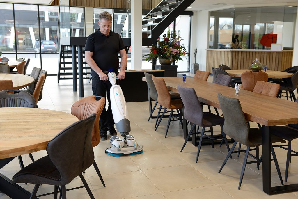 Ook is er ruimte om te leren werken met de I-mop, deze compacte schrobzuigmachine verschijnt in steeds meer werkkasten en vervangt het handmatig moppen van de vloer.